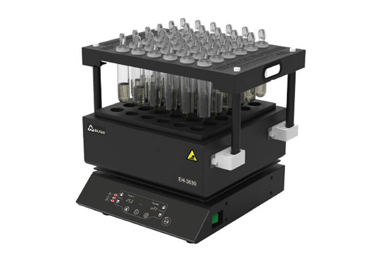 EH 系列防腐型石墨消解儀是一款適合在高濃度酸霧環境中進行樣品消解的樣品前處理設備,可以支持多達60個樣品的同時處理,充分滿足批量樣品處理需求。階梯程序控溫,自動完成消解、趕酸工作步驟,最大程度減少實驗人員與酸氣接觸。